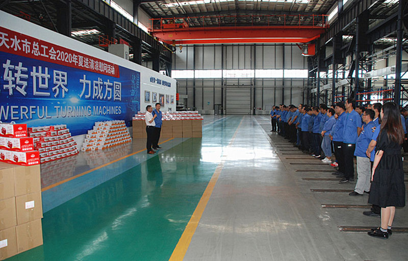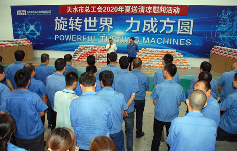 7月22日,天水市總工會經費審查委員會主任何付忠一行3人,來星火機床公司開展2020年夏送清涼慰問活動,為奮戰在一線的職工送上了價值6萬余元的防暑飲品。星火集團公司總經理劉勝,黨群工作部副部長馬存福等人接待。
