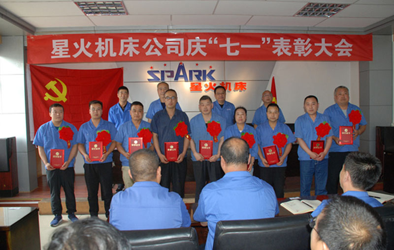 7月1日,星火機床集團公司召開慶“七一”表彰大會,隆重紀(jì)念中國共產(chǎn)黨成立99周年。黨委書記、集團公司董事長蔣保權(quán),黨委委員、集團公司副總經(jīng)理趙錦銘、高發(fā)巨出席會議。