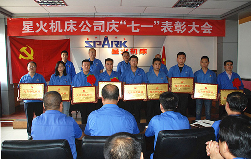 黨委書記、集團公司董事長蔣保權(quán)在會上講話。他說,今天是中國共產(chǎn)黨成立99周年紀(jì)念日,值此重要時刻,我們在這里隆重召開星火機床公司慶“七一”表彰大會,慶祝中國共產(chǎn)黨成立99周年,表彰“創(chuàng)先爭優(yōu)”活動中涌現(xiàn)出的先進黨支部、黨員示范班組、優(yōu)秀共產(chǎn)黨員。我代表公司黨委向受到表彰的先進集體和個人表示熱烈祝賀,向全公司637名黨員致以節(jié)日的問候。