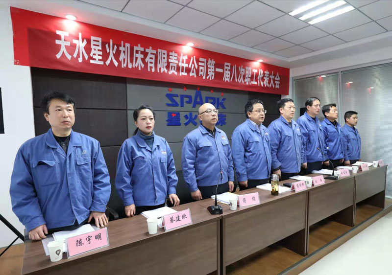 8點(diǎn)30分,主席團(tuán)成員在主席臺(tái)就座。蔣俊宣布天水星火機(jī)床有限責(zé)任公司第一屆八次職工代表大會(huì)在雄壯的國(guó)歌聲中開(kāi)幕。