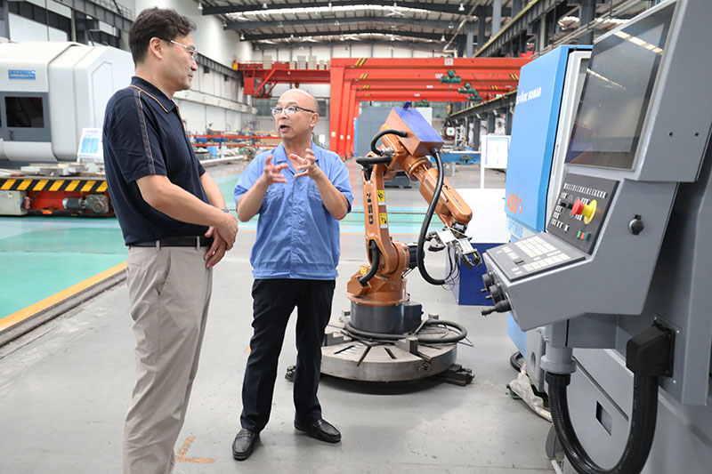 李正元一行深入星火工業園生產現場參觀考察時,聽取了蔣俊關于公司基本情況、生產經營、設計研發、產品訂貨、項目建設、人才招聘等情況的介紹。參觀過程中,李正元了解了產品數控化率、技術研發隊伍建設、人才引進使用等方面情況。他說,今天組織班子成員和各部門負責人來星火,一是參觀學習,二是尋求合作。星火機床在全省乃至全國裝備制造行業一直有很高的知名度,為全市工業高質量發展作出了貢獻。星火人的百折不撓和頑強拼搏精神值得我們學習。