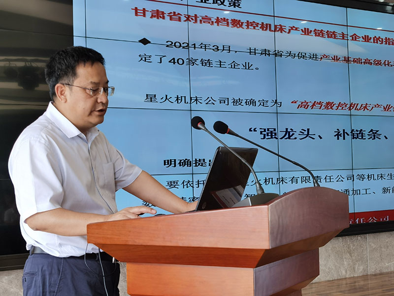 高端數(shù)控機(jī)床鏈主企業(yè)——星火機(jī)床集團(tuán)公司黨委書(shū)記、董事長(zhǎng)蔣保權(quán)在會(huì)上發(fā)言,介紹了企業(yè)基本情況、行業(yè)情況、企業(yè)“十四五”規(guī)劃、企業(yè)配套需求、產(chǎn)業(yè)發(fā)展規(guī)劃等。