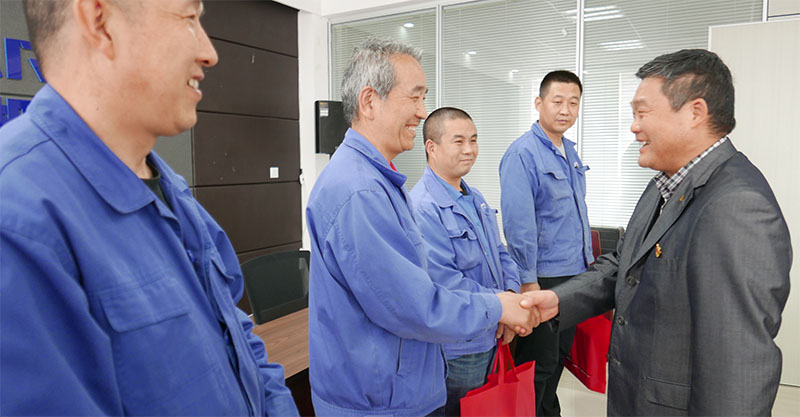 市總工會領導在生產現場為公司勞模及生產骨干30多人送上了慰問品,詳細詢問了他們的工作、生活情況,鼓勵他們繼續發揚勞動模范帶頭作用,為公司發展、企業進步再立新功。