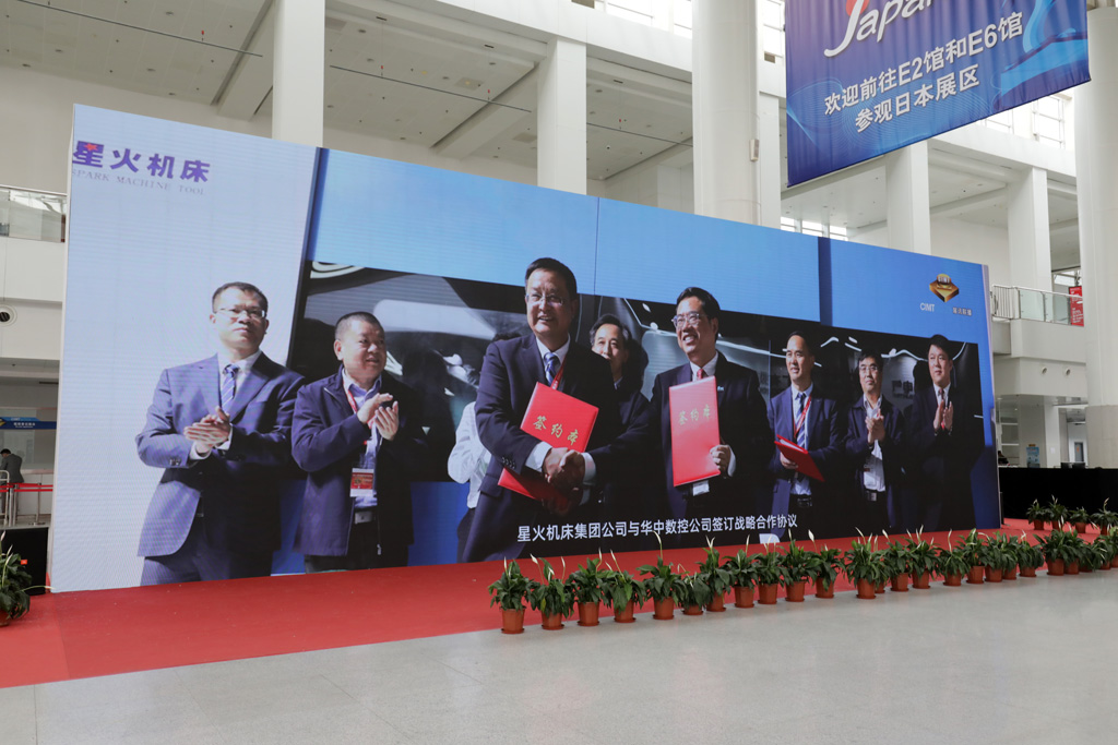 4月14日,中國機床工具行業協會主會場大屏及視頻號滾動播放星火機床集團公司展位商務洽談及簽約盛況。