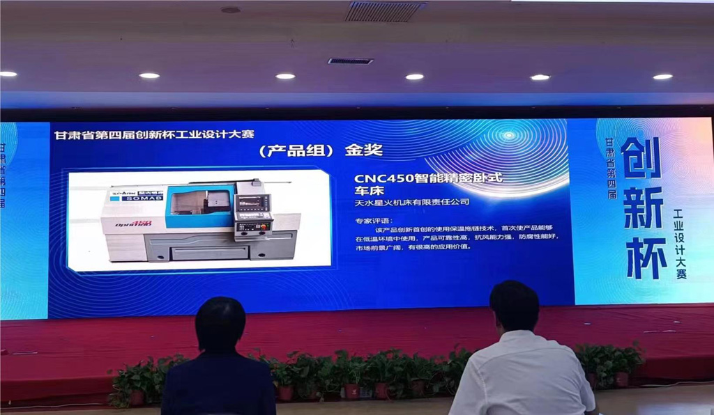 6月20日,甘肅省第四屆“創(chuàng)新杯”工業(yè)設(shè)計(jì)大賽頒獎(jiǎng)儀式在蘭州市舉行,星火機(jī)床公司產(chǎn)品CNC450智能精密臥式車(chē)床榮獲產(chǎn)品組金獎(jiǎng)。