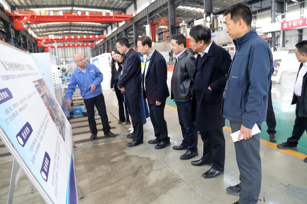 李振佑院長一行聽取了公司的基本情況介紹后,先后參觀了工業(yè)園裝配生產(chǎn)現(xiàn)場參觀和企業(yè)展廳。參觀過程中,蔣俊介紹了現(xiàn)場擺放的不同系列的大、重型機(jī)床產(chǎn)品的性能、用途。李振佑說,星火機(jī)床在全國裝備制造領(lǐng)域早已名聲在外,但耳聞不如見面,今天親眼目睹了各類大、重型機(jī)床產(chǎn)品的風(fēng)采,的確讓人眼前一亮,我們?yōu)楦拭C能有這樣的裝備制造企業(yè)感到自豪。星火機(jī)床在市場經(jīng)濟(jì)的大潮中起死回生,而且發(fā)展的越來越好,與政府的關(guān)心支持分不開,與幾代星火人的拼搏努力分不開,更與星火有深厚的文化底蘊(yùn)分不開。
