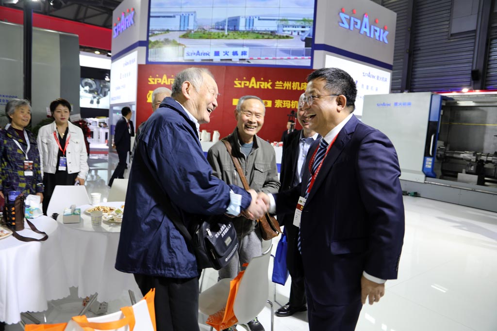 4月11日,上海展會進行第四天,星火機床集團公司展臺迎來了一波“特殊”的客人——家住上海且已退休的星火老一輩領導和職工。