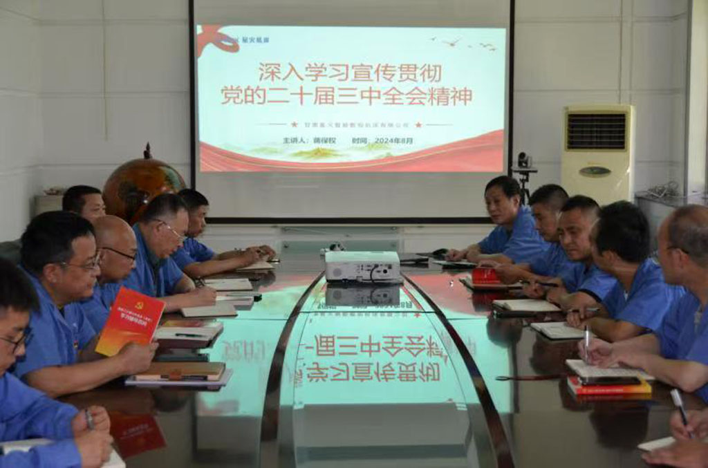 9月2日,甘肅星火智能數控機床有限公司宣講團成員、黨委書記、董事長蔣保權為機關黨支部、研銷黨支部黨員宣講二十屆三中全會精神。