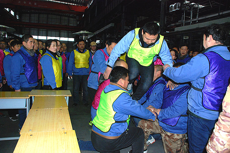第二天,拓展培訓(xùn)繼續(xù)進(jìn)行。早上8點(diǎn),培訓(xùn)老師帶領(lǐng)大家進(jìn)行情景模擬沙盤TTT標(biāo)準(zhǔn)課程——“沙漠掘金”。游戲的目的是鍛煉管理者的決策能力、目標(biāo)管理能力及團(tuán)隊(duì)的執(zhí)行能力、合作精神等。經(jīng)過(guò)沙盤模擬演練操作,10個(gè)隊(duì)中有5個(gè)隊(duì)因計(jì)劃不周、對(duì)天氣情況缺乏精準(zhǔn)的判斷而導(dǎo)致“彈盡糧絕”,中途退出;2個(gè)隊(duì)因私下互換物品,違反游戲規(guī)則,被老師罰出局,最終僅有3支隊(duì)“活著”回到駐地,老師為獲得了第一名的隊(duì)頒發(fā)了獎(jiǎng)勵(lì)金。下午進(jìn)行了“盜夢(mèng)空間”及“星火是最棒的”游戲項(xiàng)目。最后一個(gè)訓(xùn)練項(xiàng)目“搶渡金沙江”,將本次培訓(xùn)達(dá)到了高潮。此活動(dòng)展示的場(chǎng)景為:我方隊(duì)伍需要渡過(guò)金沙江,但橋墩已被破壞,后有追兵,40分鐘就會(huì)趕到。這時(shí)候,就需要10個(gè)人,2人一組,單膝跪地,左右手交疊,模擬“橋墩”,讓隊(duì)友從自己手背上踩過(guò)去,在追兵趕到之前全部渡江。渡江過(guò)程中,若團(tuán)隊(duì)成員有一個(gè)違反跑、跳、躍、跪、爬等違規(guī)動(dòng)作,就得全體重新開(kāi)始。規(guī)則明確后,隊(duì)長(zhǎng)從自愿當(dāng)“橋墩”的隊(duì)員里選定10人。活動(dòng)開(kāi)始,大家依次迅速“渡江”。遺憾的是,由于中途有隊(duì)員違反規(guī)則,“渡江”行動(dòng)反復(fù)了3次。近60人幾次踩著10名“橋墩”的手背連續(xù)“渡江”,“橋墩”們的膝蓋和胳膊達(dá)到了支撐極限,手背布滿了黑黑的鞋印,可他們沒(méi)有一句抱怨、沒(méi)有絲毫退縮。震撼的場(chǎng)景、“橋墩”們默默的付出,感動(dòng)著大家,隊(duì)友們含淚從他們手上踩過(guò),現(xiàn)場(chǎng)發(fā)出陣陣抽泣聲。此時(shí)此刻,人與人之間的距離在拉近,心與心在靠攏,感情在悄悄的升溫,大家不僅是同事,更是生死與共的兄弟姐妹。正如培訓(xùn)老師所講,一路走來(lái),有沒(méi)有想過(guò),我們的領(lǐng)導(dǎo)、我們的同事、我們的家人曾經(jīng)為自己所做的,我們又為他們做了哪些?作為“橋墩”,既然選擇了自己的路,就要無(wú)怨無(wú)悔的走下去,這是你的使命。